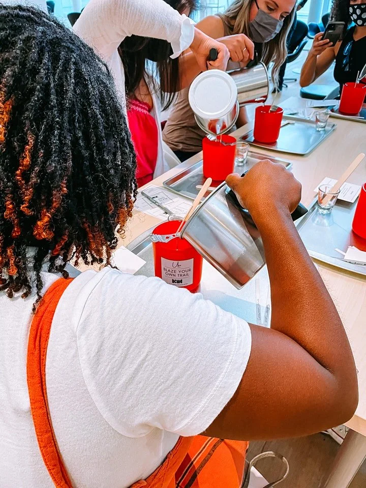 Together, we’ll go step-by-step to learn about all of the materials you need to make a candle and the candle making process. Next, you'll sample, select and blend a one-of-a-kind scent for your Soy wax candle. Finally, we'll and add a unique story to tie your scent and experience all together.